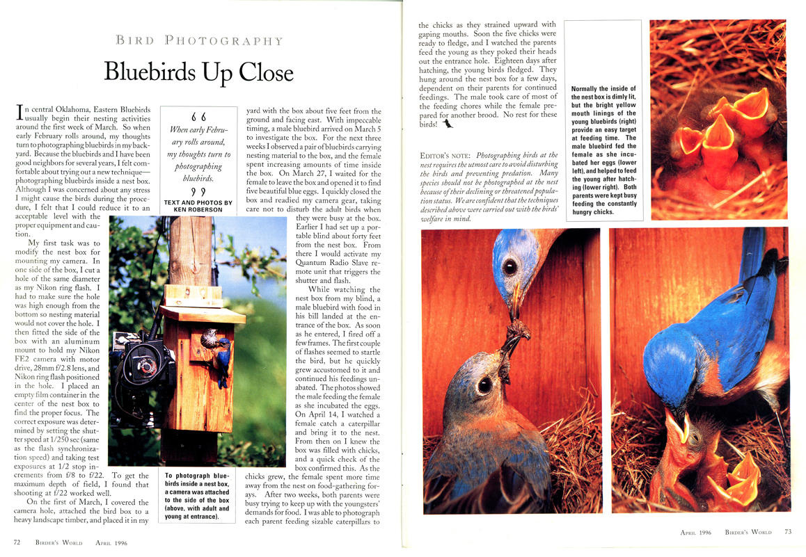 My Bluebird article was published in Birder's World and Outdoor Oklahoma Magazines